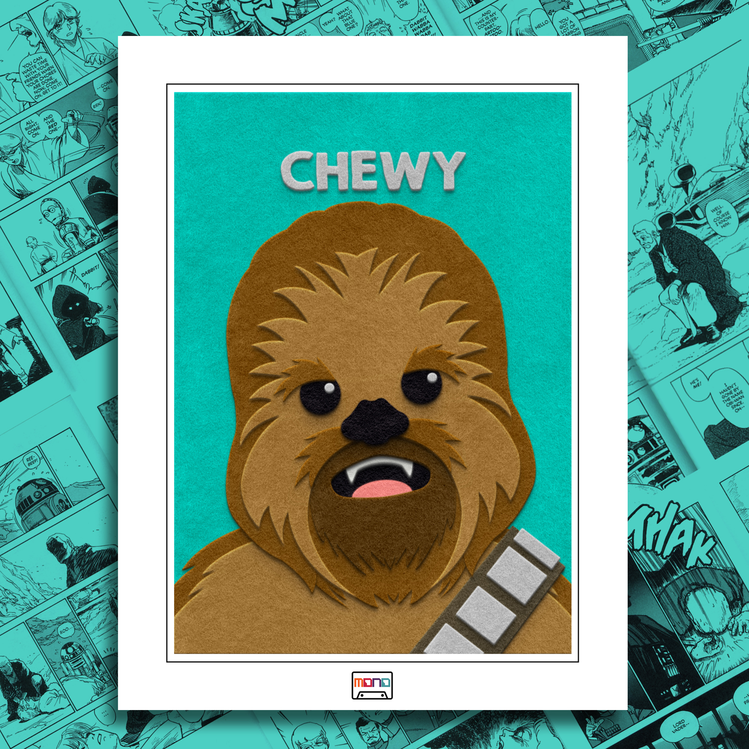 chewbacca fuzzy felt comic print